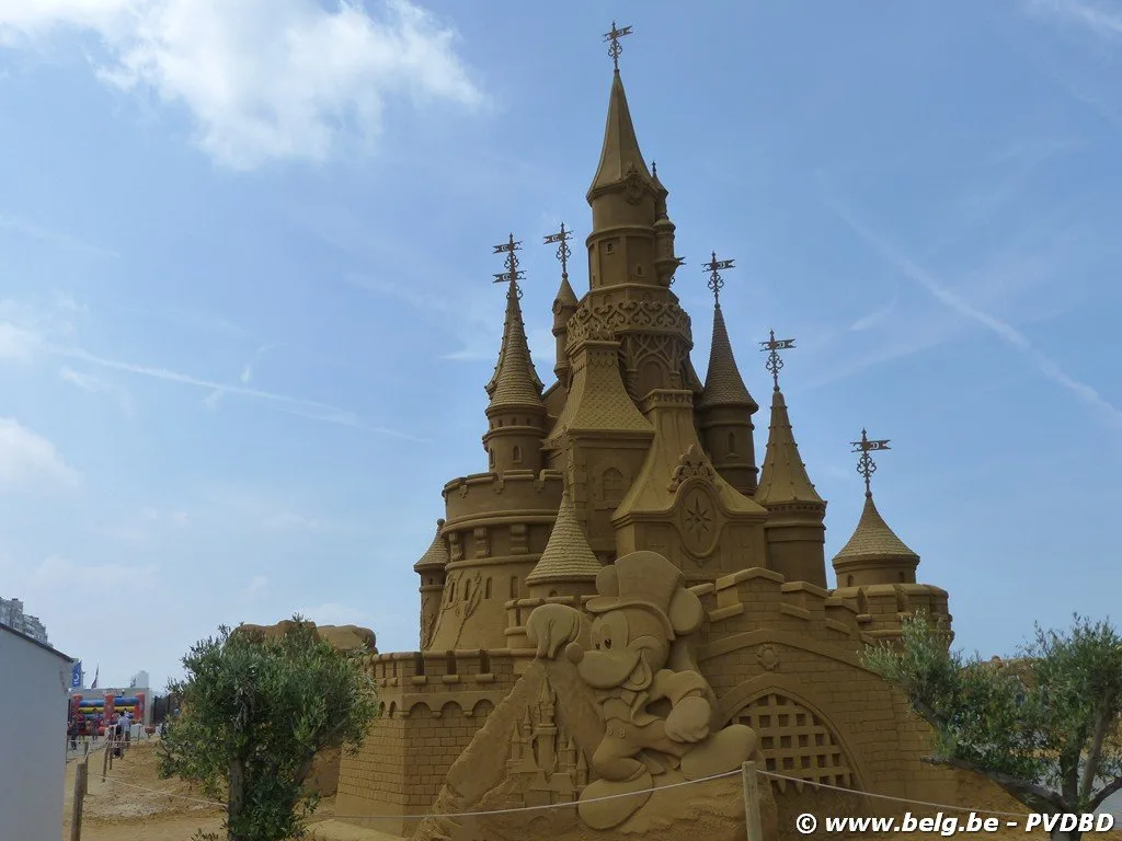 -Oostende- Momenteel is Oostende in de ban van Disney, dat komt door het jaarlijkse Zandsculpturenfestival dat in het teken staat van de 25e verjaardag van Disneyland Parijs. Het meest aangewezen en goedkoopste vervoermiddel om tot Oostende te raken is de tram, een bijkomend voordeel is dat je geen parking hoeft te zoeken bij aankomst in Oostende. Eens in Blankenberge vertrokken was het nog tamelijk bewolkt, maar als we de tram in Oostende hadden verlaten priemde een heerlijk zomerzonnetje door het wolkendek.