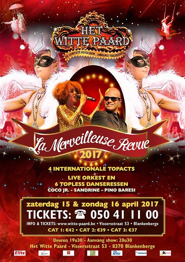 Deze zal doorgaan op zaterdag 15 en zondag 16 april. Vier internationale topacts zullen het publiek naar adem doen happen. Natuurlijk is er weer he topless showballet van zes danseressen in een nieuwe en sensuele choreografie, zij zorgen voor dat tikkeltje extra sensatie in de revuetempel. Sandrine, de femme fatale met nachtengalenstem, is uiteraard ook opnieuw van de partij. Het Witte Paard is voor haar een vertrouwde omgeving waar ze graag terugkomt, zo ook deze zomer.